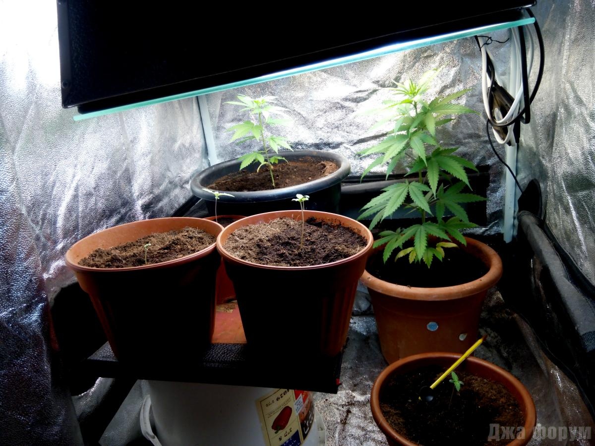 Луноход 1 694 Опубликовано: 17 июля, 2014 Купи обязательно в Гидро Шопе вермикулит и перлит (недорого). Молодежи своей успеешь даже замесить 70%+15%+15% грунт+вермикулит+перлит и пересадить в комфортный субстрат. После пересадки - полей по краям, чтобы смочить смесь и дать ориентиры для корневой, и наблюдай! Удобрения купить можно, но использовать пока не торопись! Аколь игие беседер! Все будет ОК! Главный бокс: высота 110, ширина 40, глубина 60 (см); покрытие: белый мебельный пластик; малый бокс: высота 46, ширина 91, глубина 31; покрытие: фольгированный полиэтилен; свет: ДНаТ 250 W, два спектра, ЭСЛ 6400К (85W+6шт*30W) и 2700К (2шт*55W+4шт*30W); вентиляция: пасс. вдув, актив. выдув (труба на крышу с ПК вентилятором 120 мм+в боковине бокса ПК вентилятор 120 мм на улицу+труба-охладитель ДНаТ продув ПК вентилятор 120 мм через трубу на крышу; обдув: 2 вентилятора 6 дюймов в главном и 2 ПК вентилятора 120 мм- в малом; горшок-мешок: 10 литров; субстрат: смесь фирмы "Туф"+вермикулит+перлит; удобрения и добавки: сульфат магния+HESI (TNT, BLOOM, PHOSPHORUS PLUS, BOOSTER)+GHE(Diamond Black, Ripen); семена: дичка. Мой третий гров (завершен) Мой четвертый завершенный цикл и текущий гров в одном репортаже Поделиться сообщением Ссылка на сообщение Поделиться на других сайтах