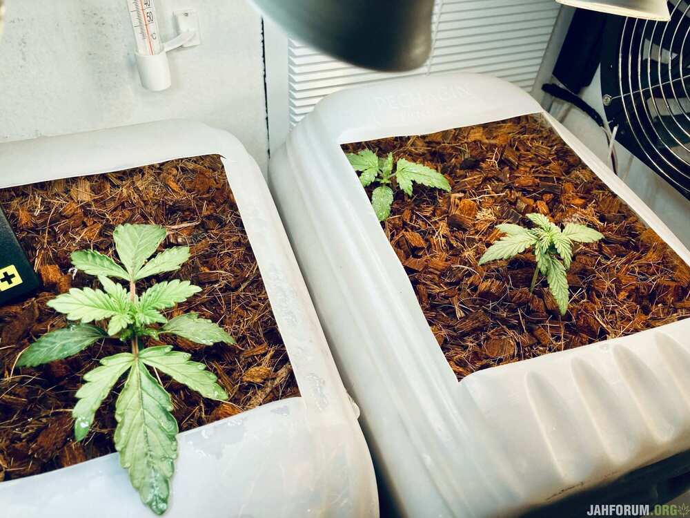 Tom-Hanks 1 212 Опубликовано: 2 сентября, 2021 ДЕНЬ: 12 Всем ХАЙ ПОЛИВ Послушав более опытного товарища @smalinet полил растихи. PH-метр ебобо (15.7)…. а дистилята, чтоб его колибрануть нету. Замерил только соли: - Вода (1,2л) КАЛИФОРНИЯ | Вход: 340ppm / Выход: 500ppm *ГОРИЛЛА aka МАНДАРИН | Вход: 340ppm / Выход: 460ppm ——-Дренаж: 400-500млп БРАЗЫ, что скажите о данных с дренажа? (Вроде норм все, насколько я понимаю) По следующему поливу вопрос???????????????НА КОКОСЕ АНАЛОГИЧНО ЗЕМЛЕ - ПЕРВЫЙ ПОЛИВ 50% УДОБРЯХ?????? *Да бразы, две растихи в одном горшке Ну так получилось, хули… Думал ГОРИЛЛЕ пизда пришла, даже вытащил посмотрел корень - обратно прикопал. Пересадил МАНДАРИН, и забыл за ГОРИЛЛУ, а она сука выжила, да ещё неплохо (относительно) выглядит. КАЛИФОРНИЯ прям радует. Тут не чего сказать: А горшок номер2 не радует… МАНДАРИН (на фото внизу) тормознул за день до пересаживания, хер пойми… Он вообще рос спокойно в стакане, непонятно, в чем причина. ГОРИЛЛА (на фото вверху) ВОССТАЛА из мертвых и за последние 2 дня сильно стрельнула, почти догнав Мандарин (горшок карликов ) Благодарю за внимание 2 Поделиться сообщением Ссылка на сообщение Поделиться на других сайтах